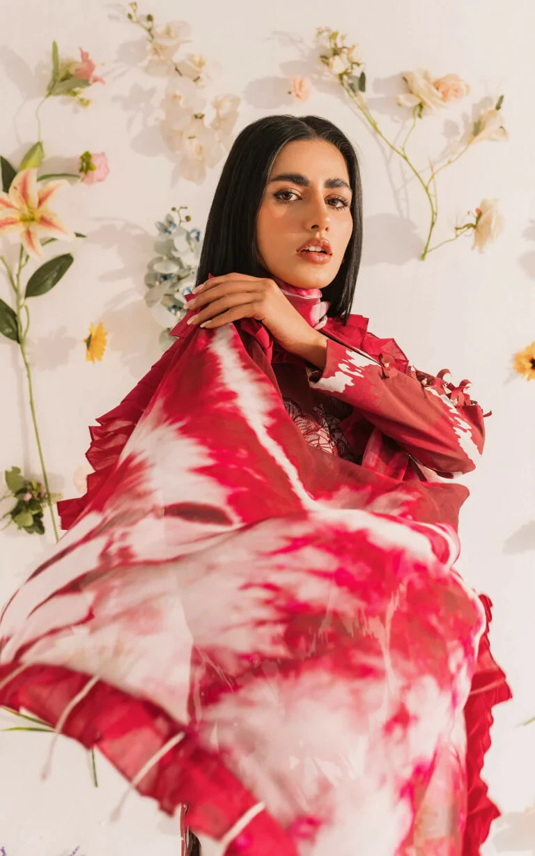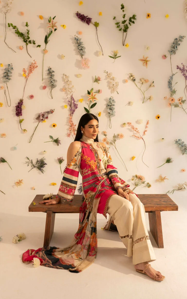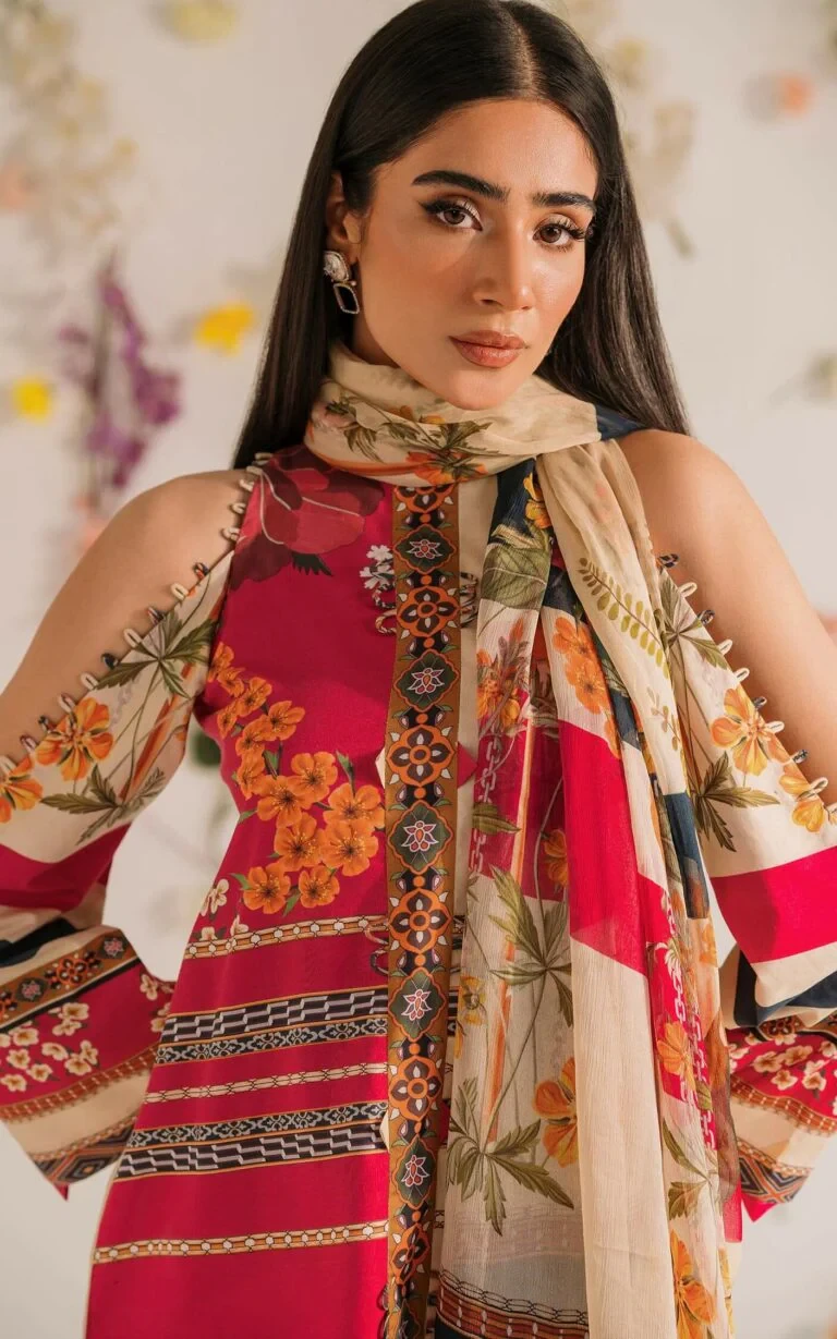 Digital printed lawn shirt with embroidered neckline