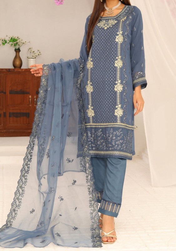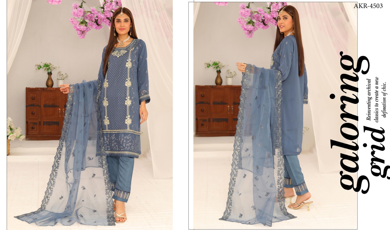 Includes: Ready-Made Kameez, Trouser, Dupatta.