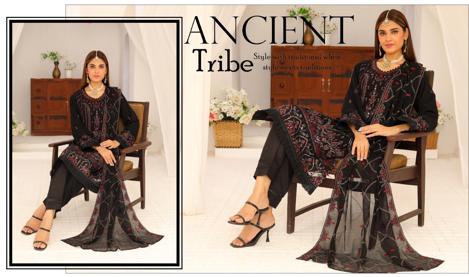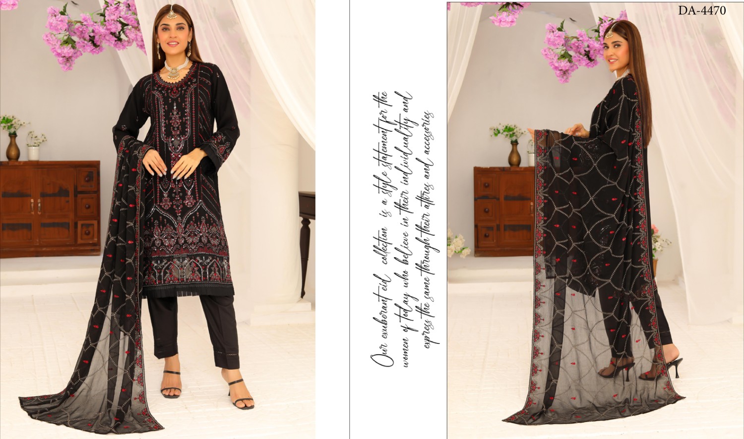 Includes: Ready-Made Kameez, Trouser, Dupatta.