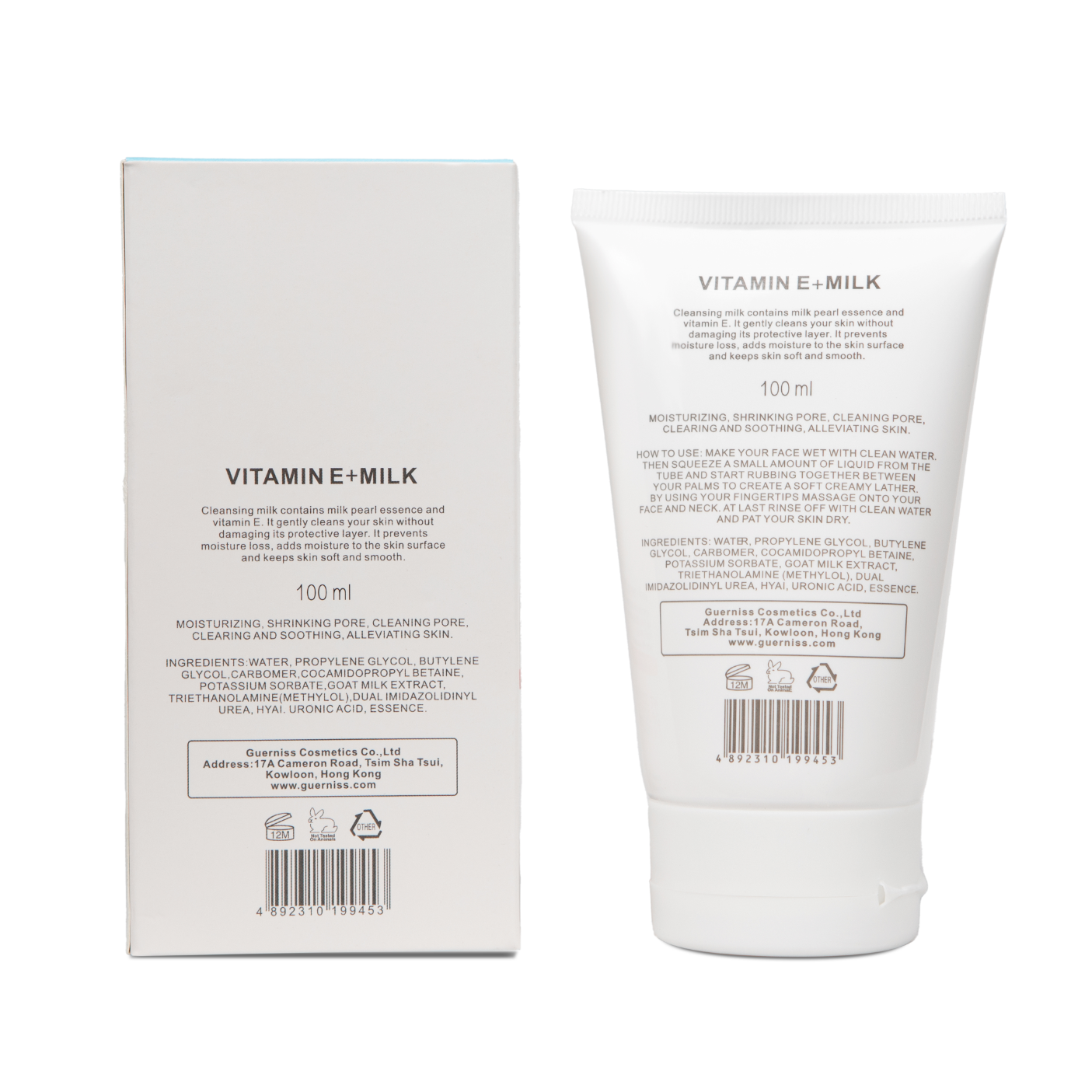 When a product for example Guerniss Vitamin E Milk plus face wash, it has the following properties: