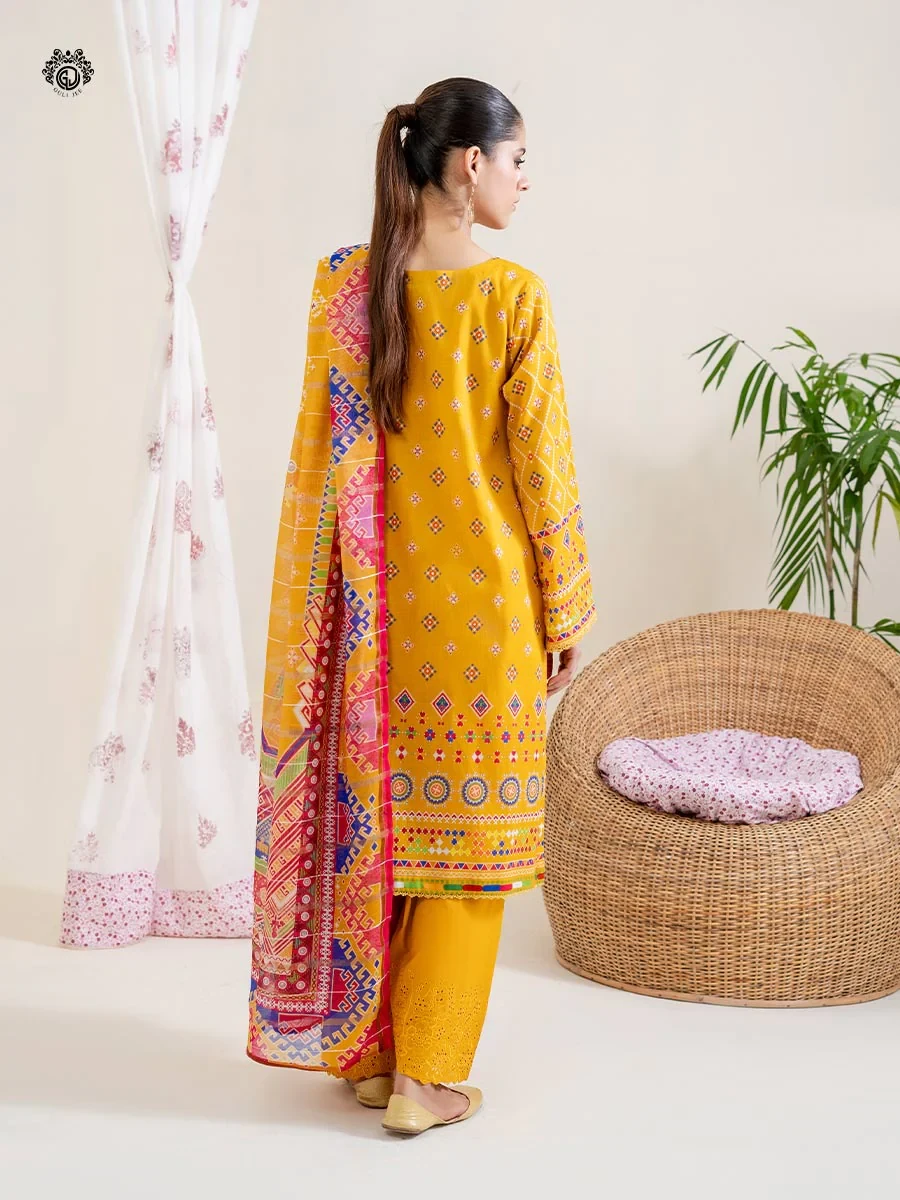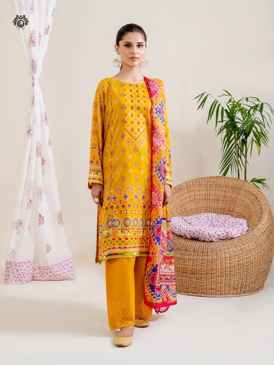 Gull Jee NAQSH - 3PC EMBROIDERED NECK DIGITAL PRINTED LAWN FRONT DYED COTTON CAMBRIC EMBROIDERED BORING TROUSER ZARI SEQUINE DUPPATA - GNAQ2301A7