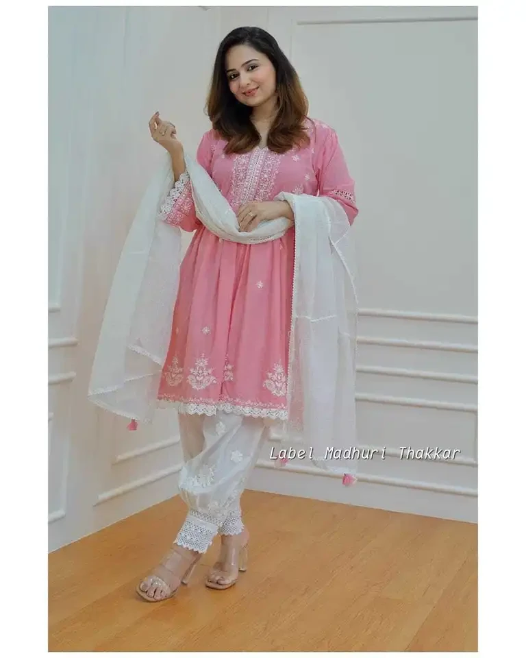 √জামা সেলোয়ার ও ওড়না পিওর সুতি কাপড়ের(premium quality) √জামার বডিতে এমব্রয়ডারি এর কাজ করা আছে।