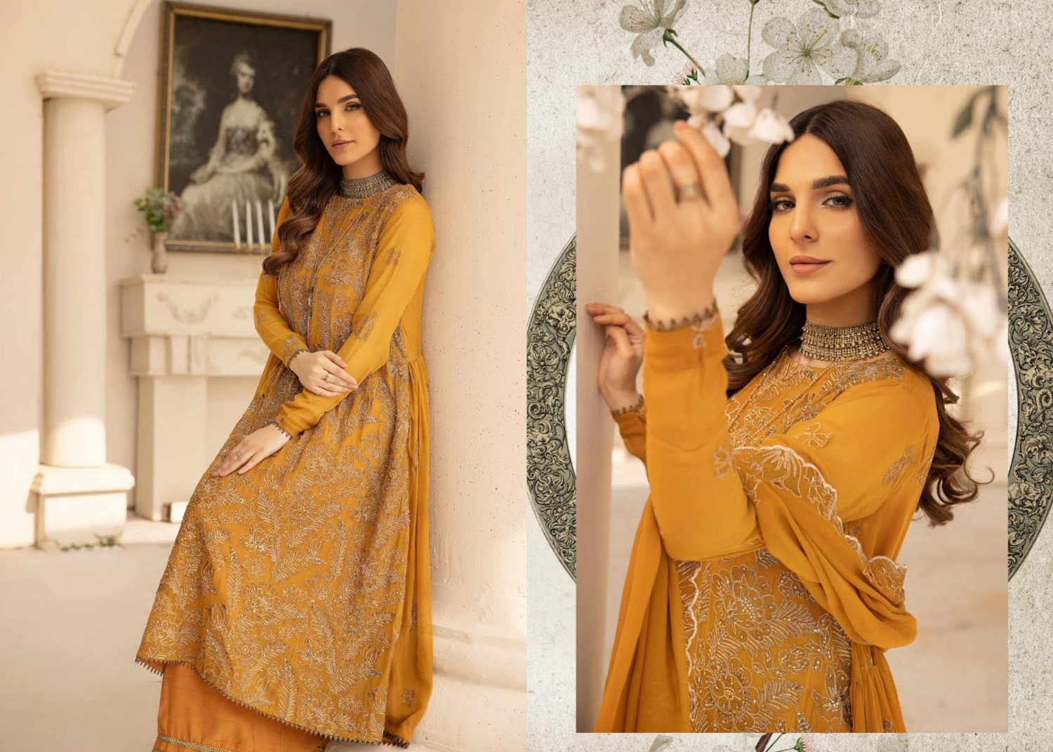 •Embroidered And Hand Embellished Work Chiffon Sleeves.