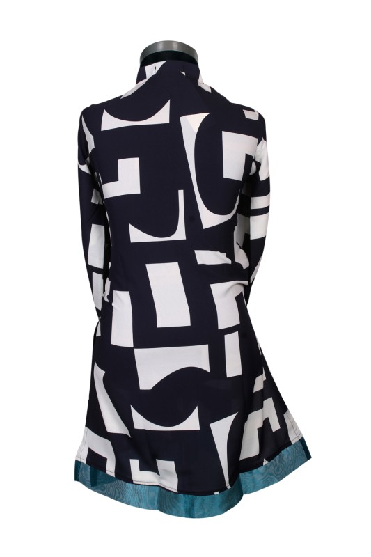 Featuring a captivating black and white abstract print with a pop of color on the sleeve, complemented by a trendy silver tassel and the added convenience of pockets. Shop now and make a bold fashion statement.
