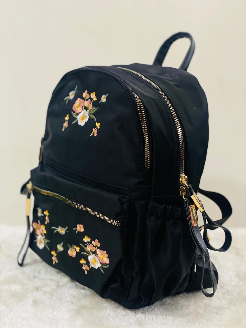 Zip It Good 2024 new Women backpacks messenger bag hand-embroidered double back college style Oxford cloth backpack bags beg - Black