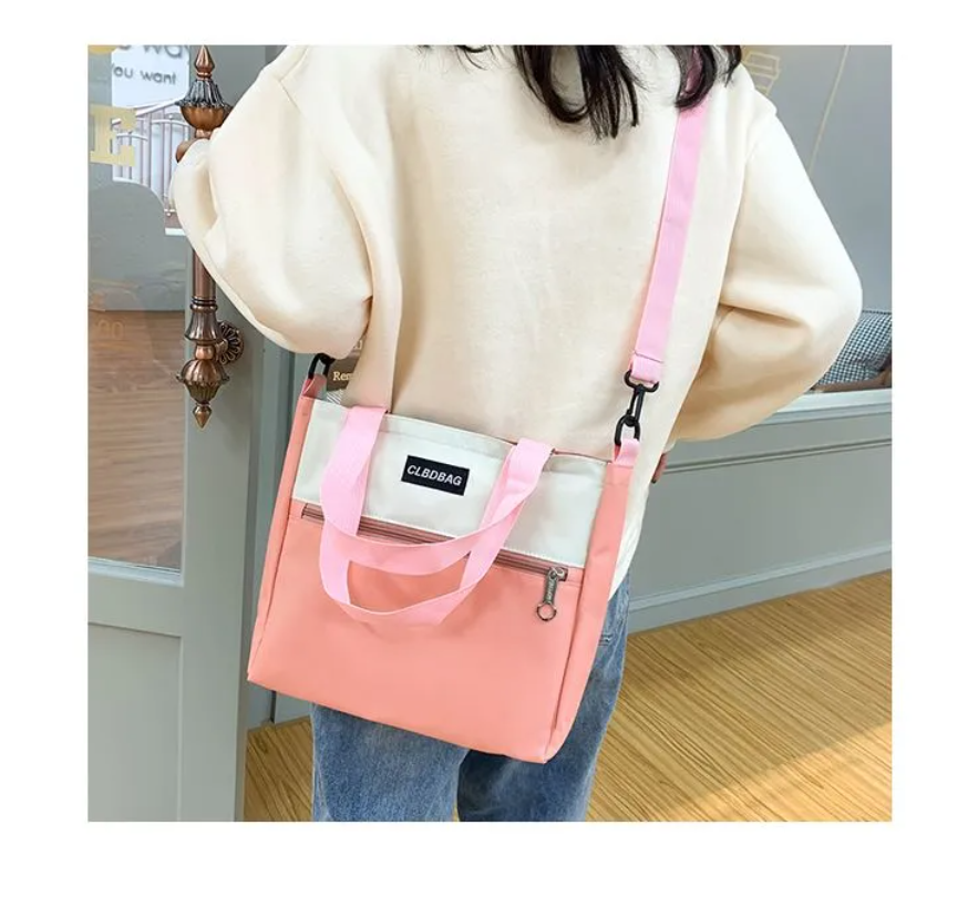 Zip It Good 4pc Set: Two-Tone Backpack + Tote Bag + Crossbody Bag + Pencil Cas - Pink