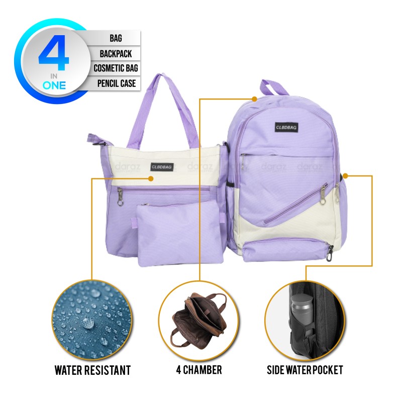 Product details of Zip It Good 4pc Set: Two-Tone Backpack + Tote Bag + Crossbody Bag + Pencil Cas