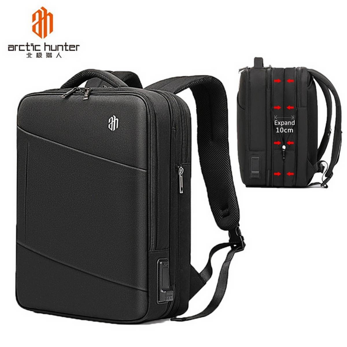 Zip It Good ARCTIC HUNTER Backpack Men Fit 15.6 inch Laptop USB Charging Multi-layer Men's Bag Large Capacity Backpacks, Expandable Backpacks - Backpack - Black