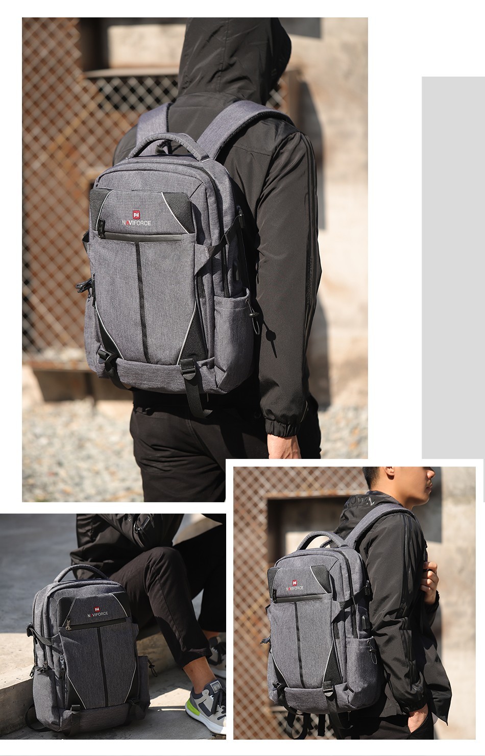 Zip It Good Medium Size 18 Inch NAVIFORCE Waterproof Fashionable School Bag/Travel Bag/College Backpack with USB Charging - GRAY