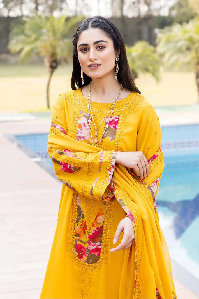 3-Pc Unstitched Embroidered Schiffle Swiss With Chiffon Dupatta CSM23-07