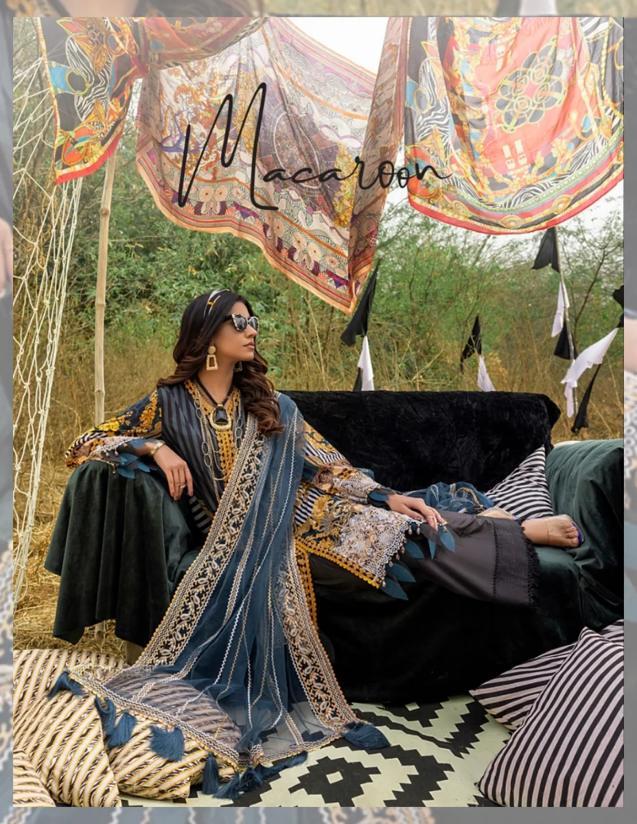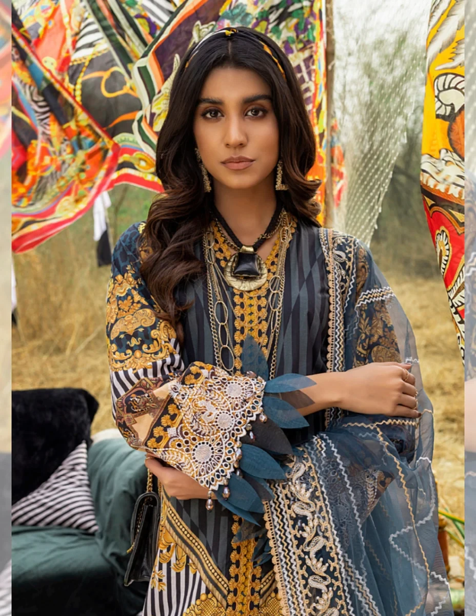 • Digital Printed And Schiffli Embroidered Lawn Back 0.8 MTR