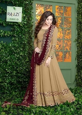 Brown New Indian Georgette Party Wear Embroidered Style Anarkali Suit Gawn For Women