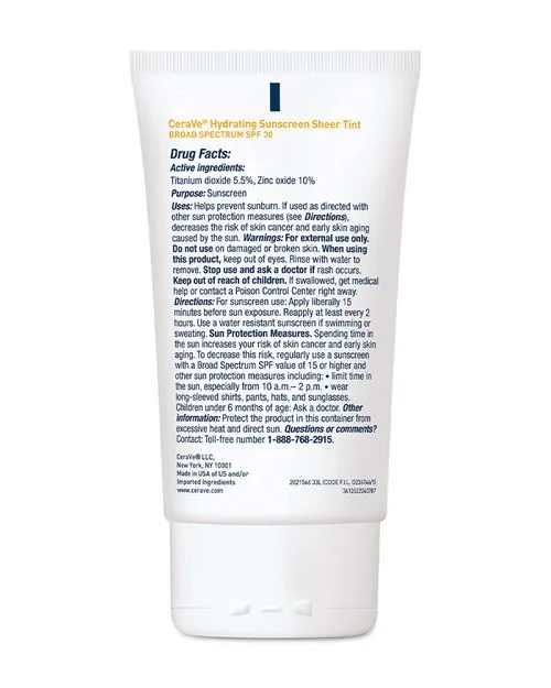 • Apply CeraVe Hydrating Mineral Sunscreen Broad Spectrum SPF 30 Face with Sheer Tint liberally 15 minutes before sun exposure