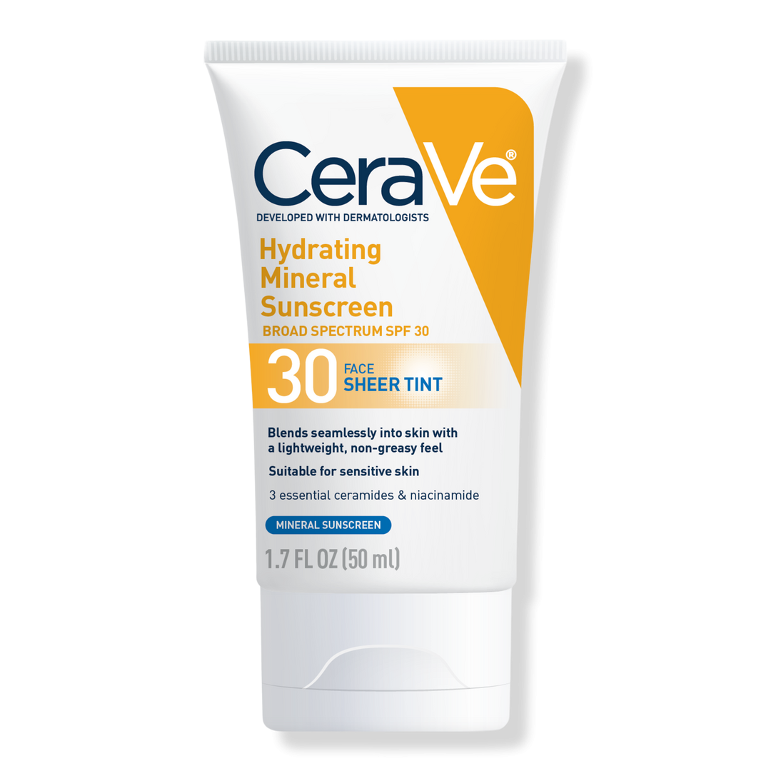 Protect your skin, while getting a healthy glow without any white cast. CeraVe Hydrating Mineral Sunscreen Broad Spectrum SPF 30 Face Sheer Tint provides UVA/UVB protection with 100%-mineral titanium dioxide and zinc oxide, forming a barrier on the surface of your skin to reflect the sun’s rays. Non-greasy and suitable for sensitive skin, our mineral sunscreen with tint seamlessly blends into all skin tones.