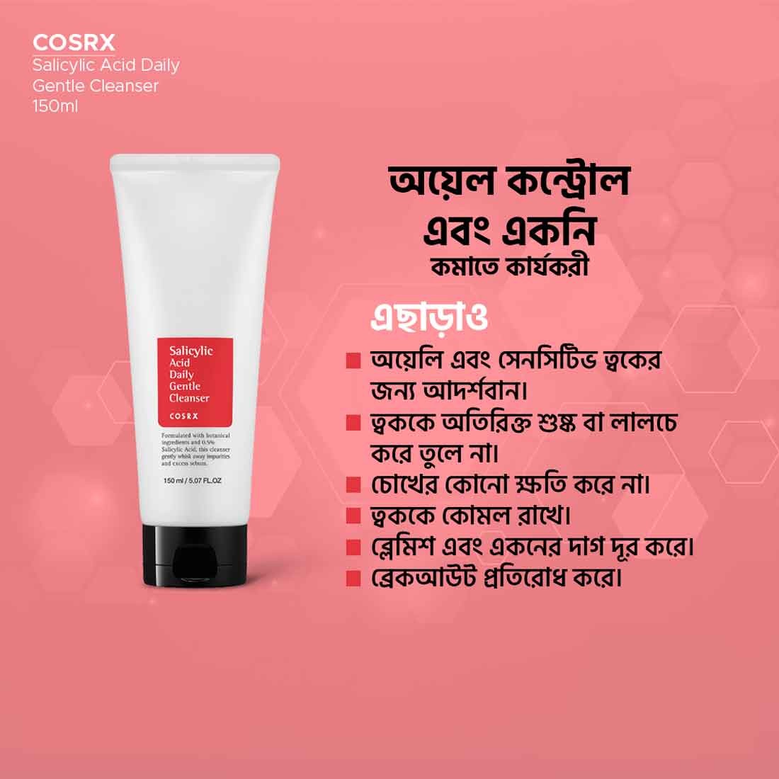 Salicylic Acid Gentle Cleanser is a brand-new, high-quality product. It is used for those whose skin is too oily, too sensitive or has too many acne problems. It is a COSRX Korean skincare brand that is known for its gentle and effective products.