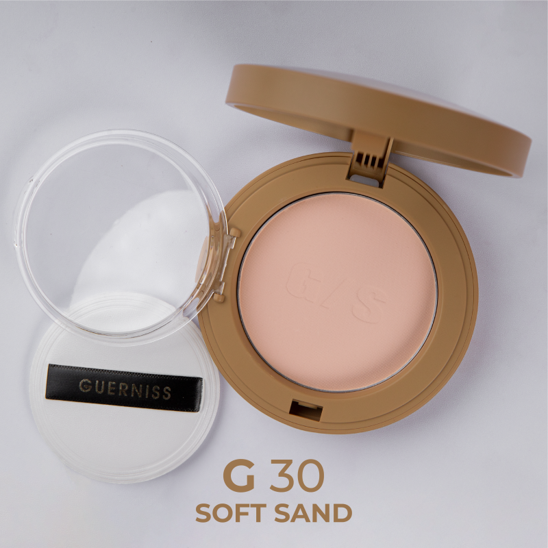 Guerniss Compact Powder gives a medium flawless coverage, holds makeup all day and doesn’t stick to powder one second peeling matte. The finishing is silky matte with three varieties of shades.