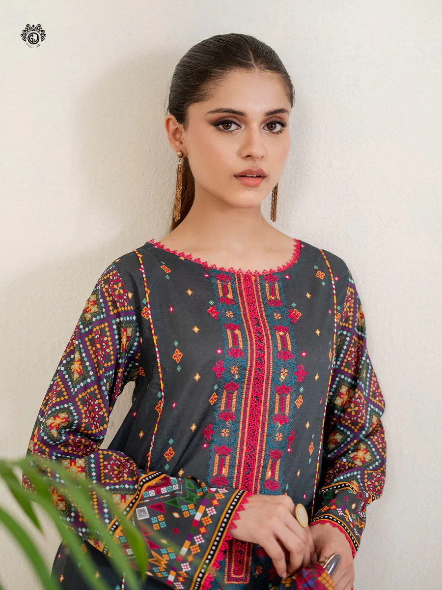 • LUXURY DIGITAL PRINTED LAWN NECK EMBROIDERED FRONT