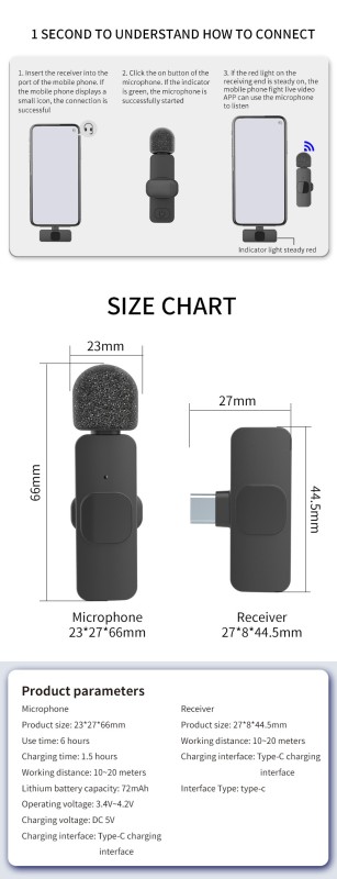 Product details of K9 Wireless Dual Microphone Professional Lapel Lavalier Microphone type C with noise Cancellaion