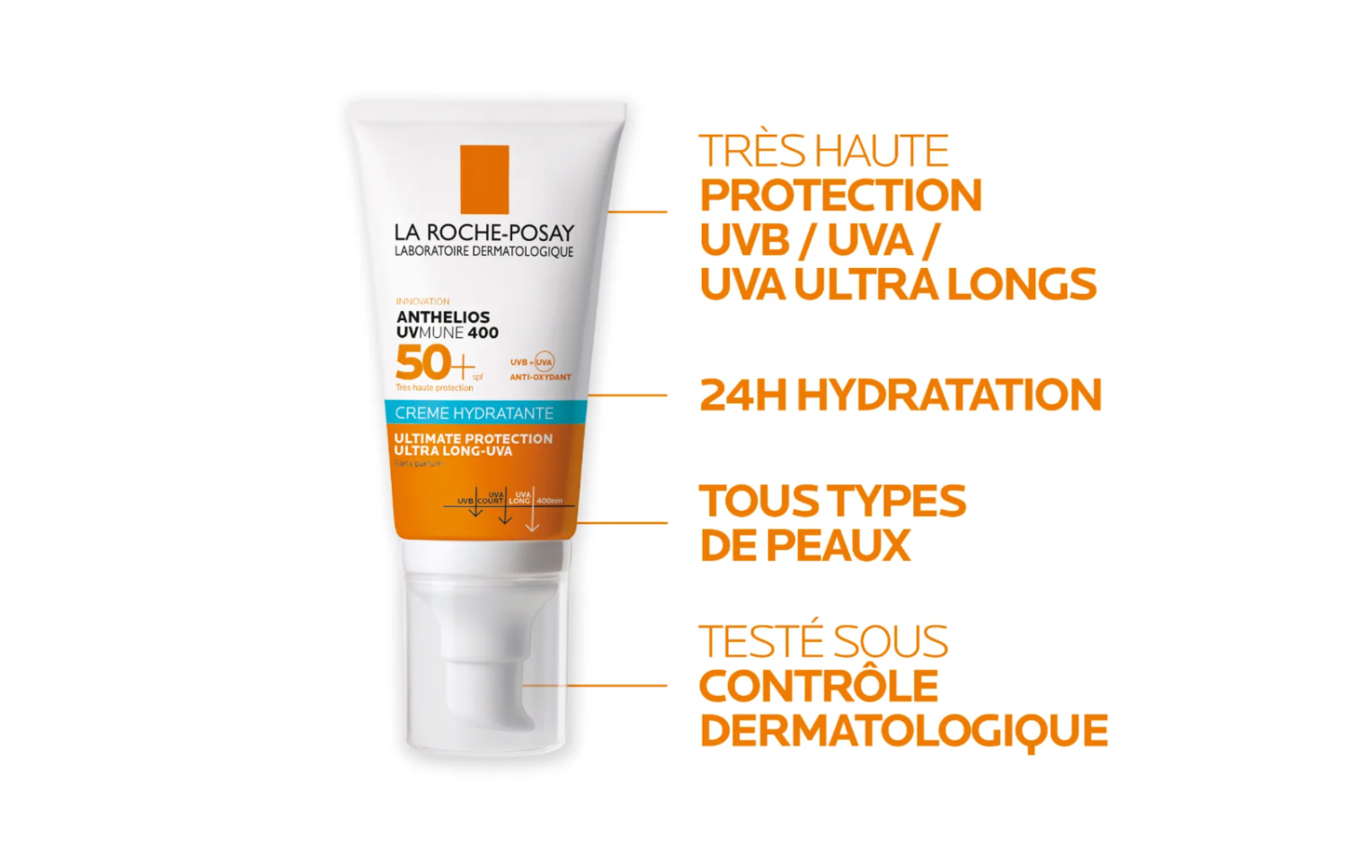 La Roche Posay Anthelios Uvmune 400 Hydrating Cream Spf50+ is a very high protection sun cream for sensitive, sun-allergic facial skin. Specifically Formulated for Specifically formulated for sensitive skin. An easy to apply, luxurious, moisturizing, ultra-comfortable, and non-greasy texture. Helps to prevent the appearance of sun-induced dark spots. Very water-resistant. Ultra-comfortable melt-in moisturizer.