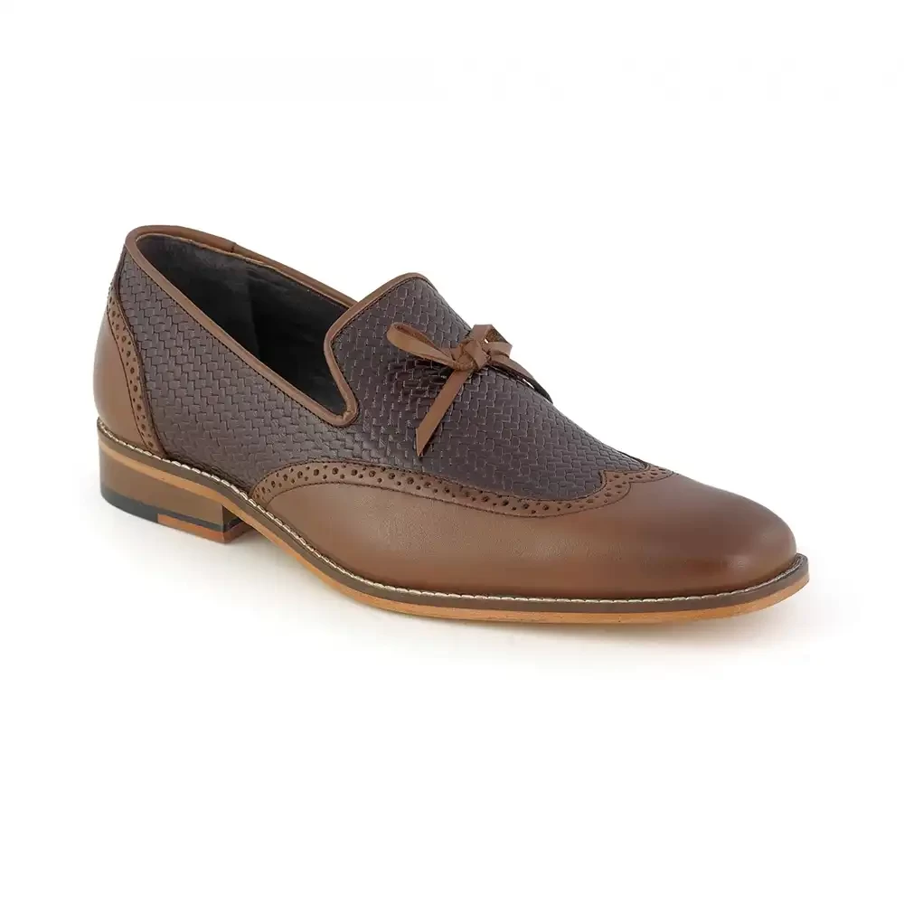 The classic design staple work wingtip loafer brings together sturdy functionality and formal ethic. Slip one on, you’ll never feel out of place in any business setting. This shoe offers up a full-grain cow crust leather upper with goatskin lining and memory foam sole for added comfort while keeping your feet protected all day long. Its TPR outsole also has been designed so it won’t mark or scratch surfaces like other materials might if stepped on accidentally by someone else.