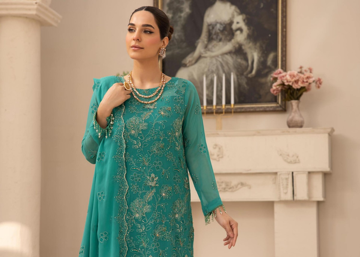 •Embroidered And Hand Embellished Work Chiffon Sleeves.