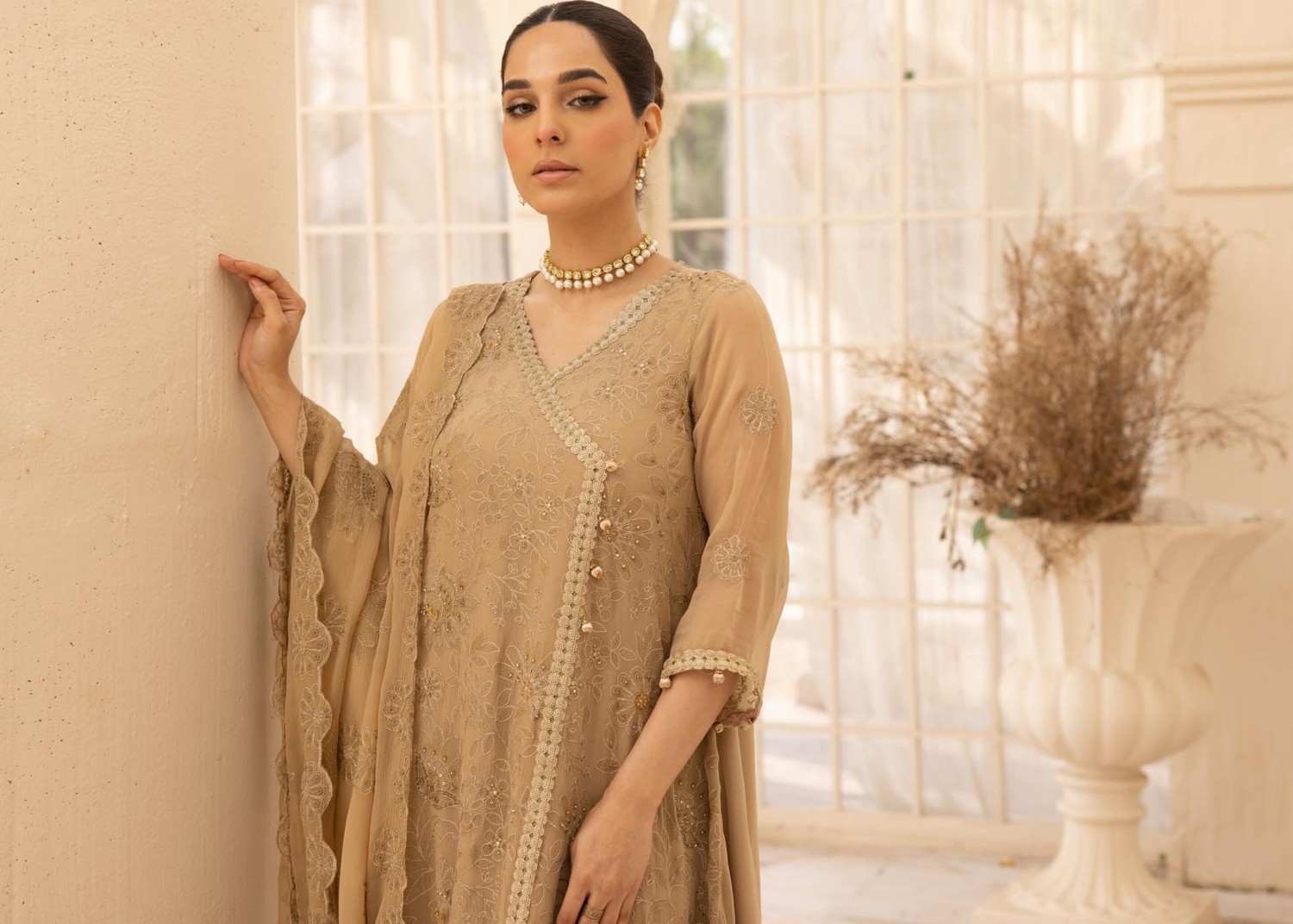•Embroidered And Hand Embellished Work Chiffon Sleeves.