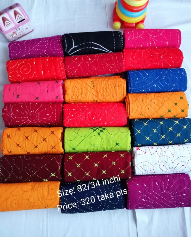 ? সাইজ:বেবি কাঁথা (22/32" ইঞ্চি,26/32" ইঞ্চি,32/34" ইঞ্চি)।বড়োদের নকশি কাথা (4.5/5 হাত,5/5.5 হাত)।