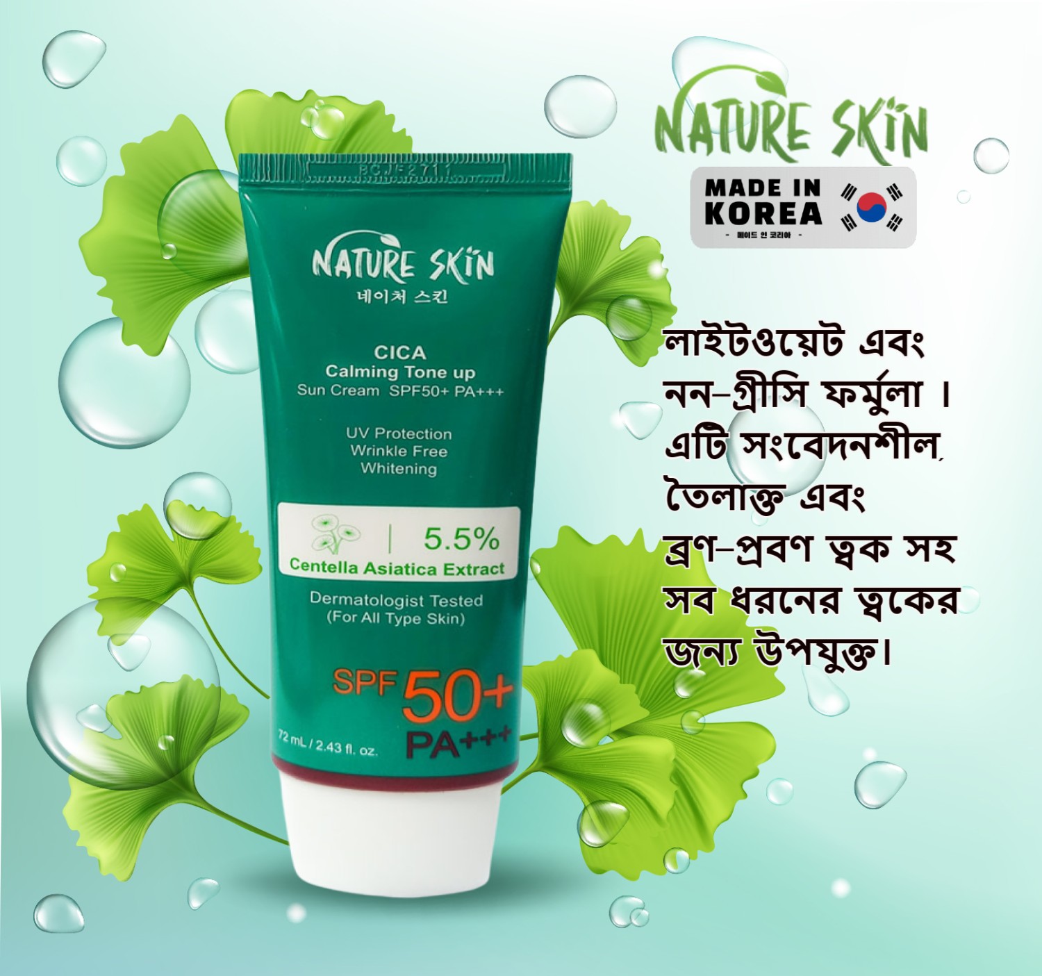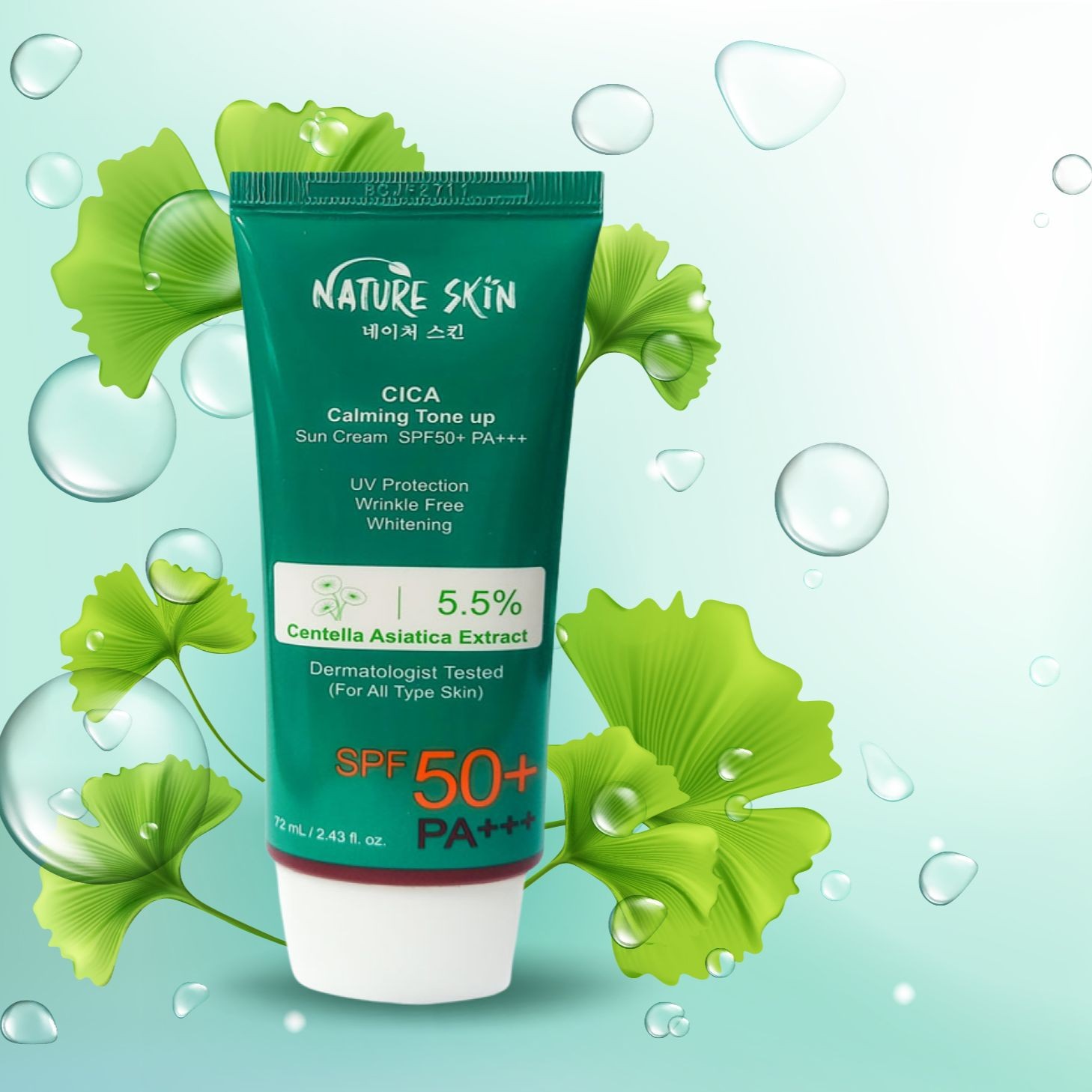ব্রড-স্পেকট্রাম সান প্রোটেকশন: সিকা ক্যালমিং টোন আপ সান ক্রিম একটি শক্তিশালী SPF50+ PA+++ সুরক্ষা প্রদান করে, আপনার ত্বককে UVA এবং UVB উভয় রশ্মি থেকে রক্ষা করে, যা রোদে পোড়া, অকাল বার্ধক্য এবং ত্বকের ক্ষতির কারণ হিসাবে পরিচিত।