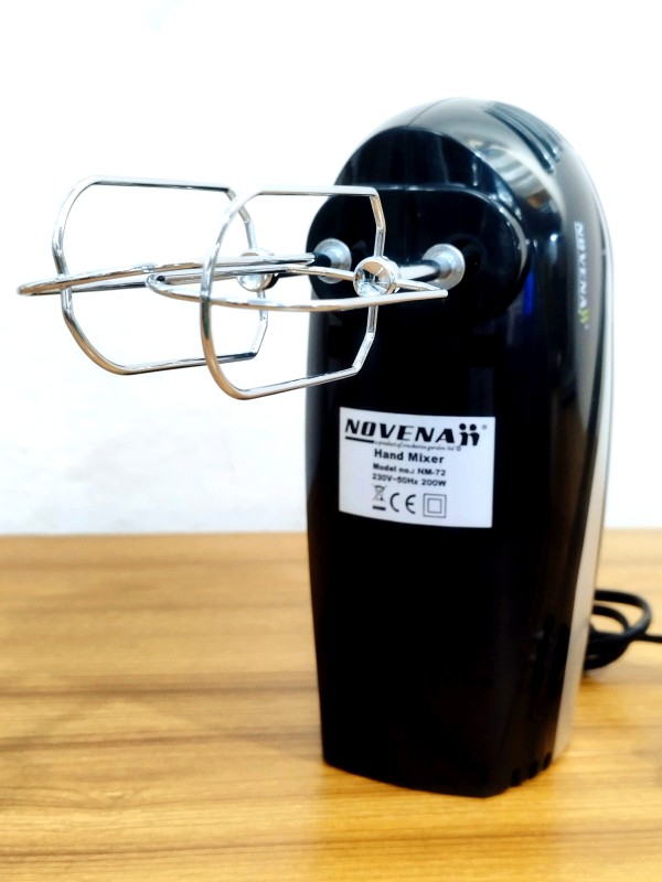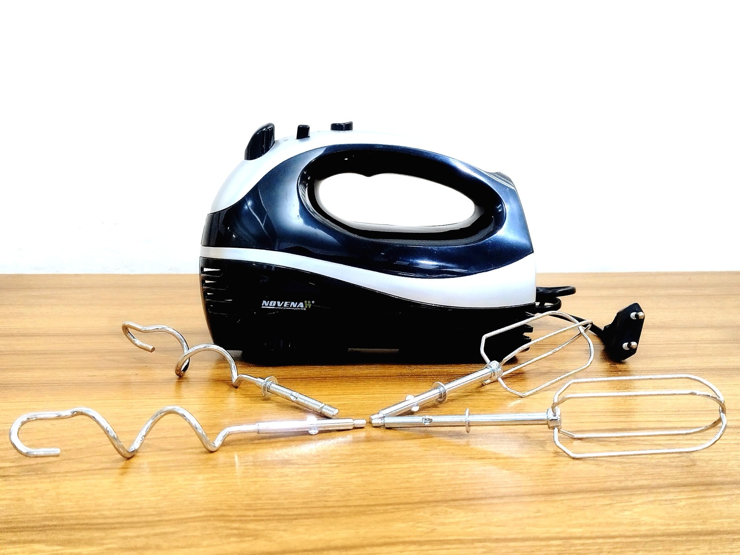 This Egg Beater by Novena is a 5 Speed hand mixer egg beater. It is a good helping hand in the kitchen. It has a turbo switch for mixing any cream or bit egg properly. It has 2 beaters for eggs and cream & 2 hooks for mixing the dough. The eject button helps you to remove those beaters & hooks easily.