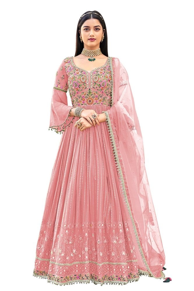 Pink Faux Georgette Festival Designer Floor Length gown Salwar Suit