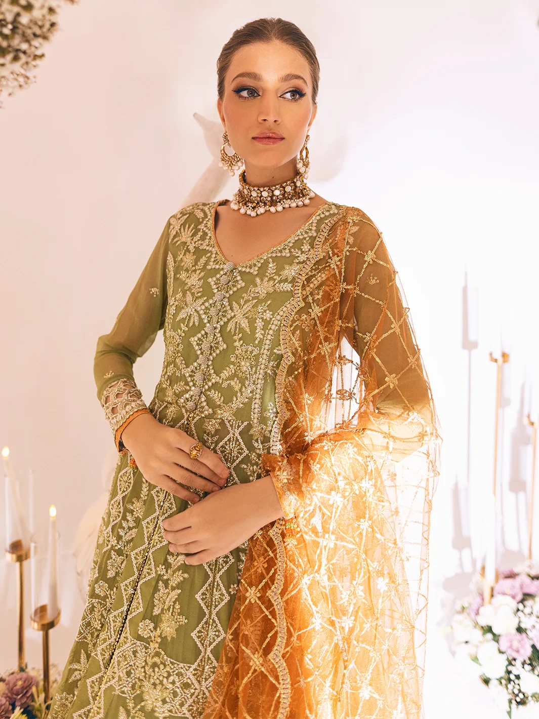 • Embroidered & Sequinned Chiffon for Back Yoke & Sleeves