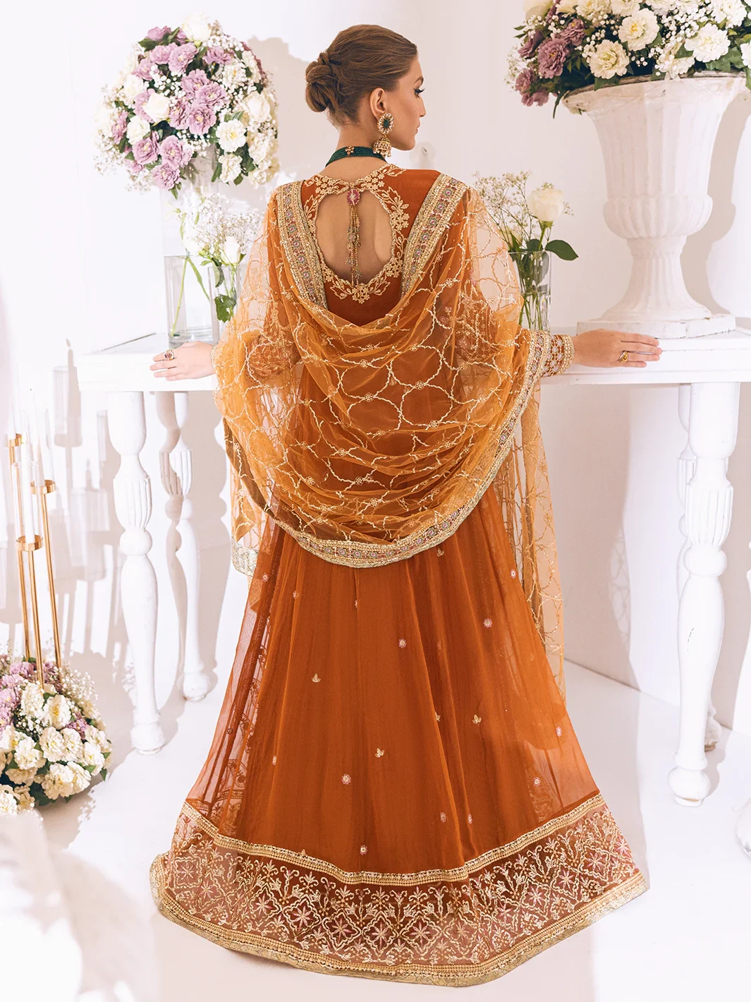 • Embroidered & Sequinned Chiffon for Back Yoke & Sleeves