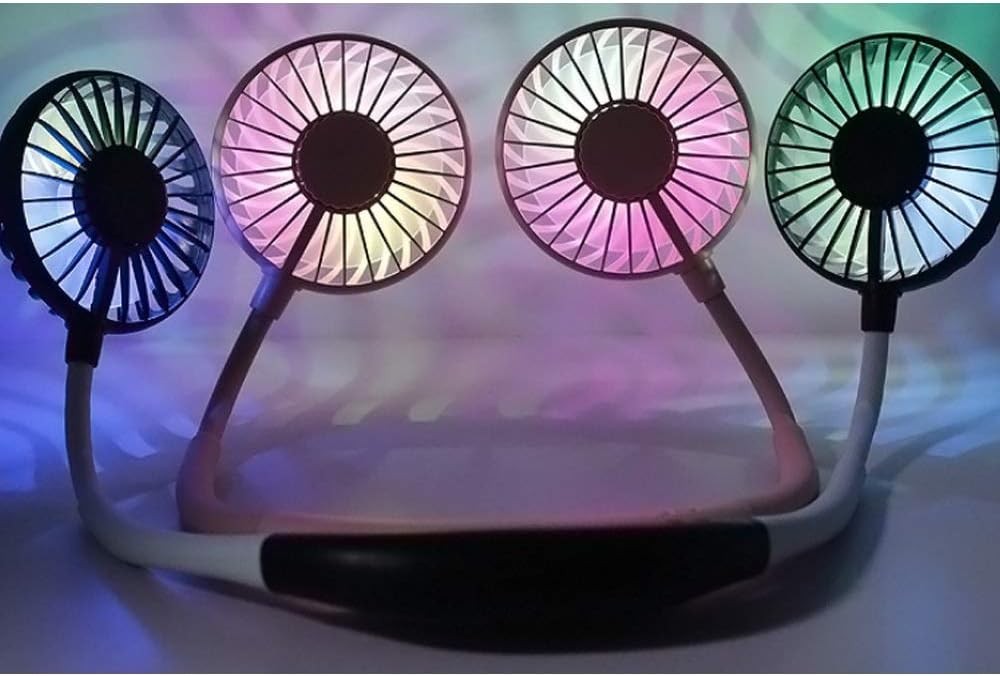 4 Colors Optional: Mini neck double fans are built-in 1200mAh battery, can quickly charging and long time using, Black, Pink, Blue, Green, White, you can according to your likes to choose.