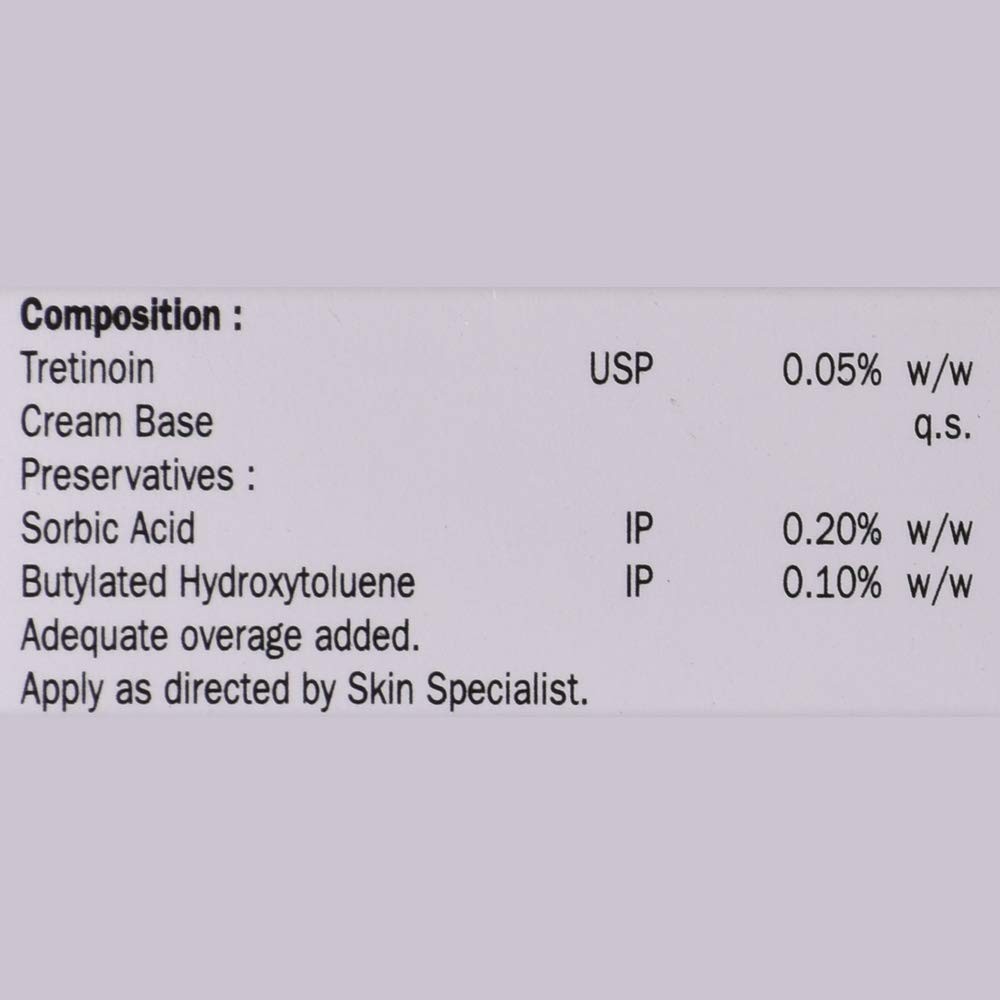 Tretin 0.05% Cream is a form of vitamin A that is used to treat acne which appears as spots or pimples on your face, chest, or back. It also helps to smooth rough facial skin and to reduce fine wrinkles on the skin.