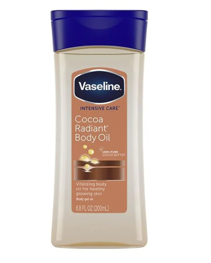 Made with cocoa butter and a blend of Vaseline Jelly, Vaseline Intensive Care Cocoa Radiant Body Gel Oil helps keep your skin looking healthy and fresh. Our rich formula combines 100% pure cocoa and shea butters, giving you a natural glow. Deep Moisturizing Daily Body Gel Oil Vaseline Intensive Care Cocoa Radiant Body Gel Oil goes beyond basic moisturization. Our Intensive Care range works to heal dry skin deep down. Vaseline Intensive Care Cocoa Radiant Body Gel Oil contains healing micro-droplets of Vaseline Jelly that lock in moisture. Our moisturizing body gel oil restores the essential moisture your skin needs with a blend of nourishing ingredients and gives skin a natural, healthy glow. With daily exposure to environmental triggers, skin's natural moisture barrier can break down, allowing for water to escape the skin. The healing micro-droplets of Vaseline Jelly in our gel oil locks in moisture to allow the skin's natural barrier to recover. Smooth, hydrated skin can be yours with Vaseline Intensive Care Cocoa Radiant Body Gel Oil. Vaseline Intensive Care Cocoa Radiant Body Gel Oil is made with pure cocoa butter and replenishing oils for healthy-looking, glowing skin. Our body gel oil locks in moisture to help revitalize dry and dull-looking skin. Best for: Dry skin, dull skin.