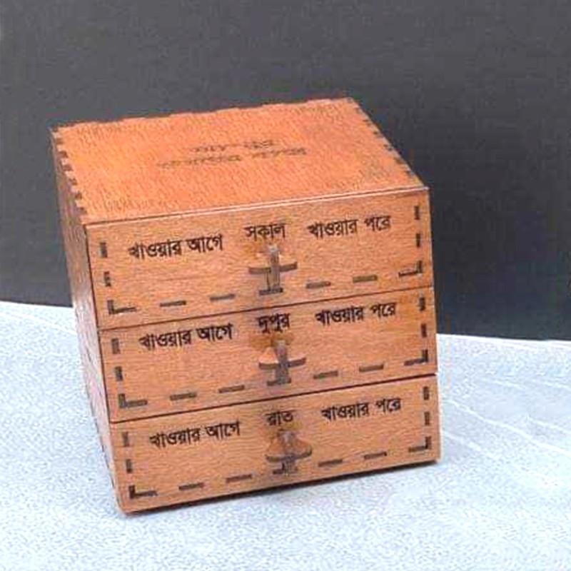 • Medicine box made of wood is useful for keeping medicines of patients.