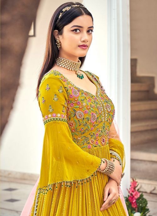 This Anarkali suit can be customized up to maximum size available in inches 58.