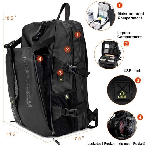 Specifications of Zip It Good Arctic Hunter Sports Multi-Functional Large Capacity Outdoor Gym Football Independent Shoe Bag 2020 Basketball Backpack